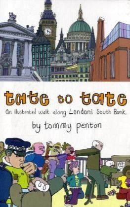 Shows a group of people walking east along the South Bank. Concertina-bound, this graphic book features the diverse group, of different races and ages, and as you follow their progress from spread to spread you start to notice various details.
